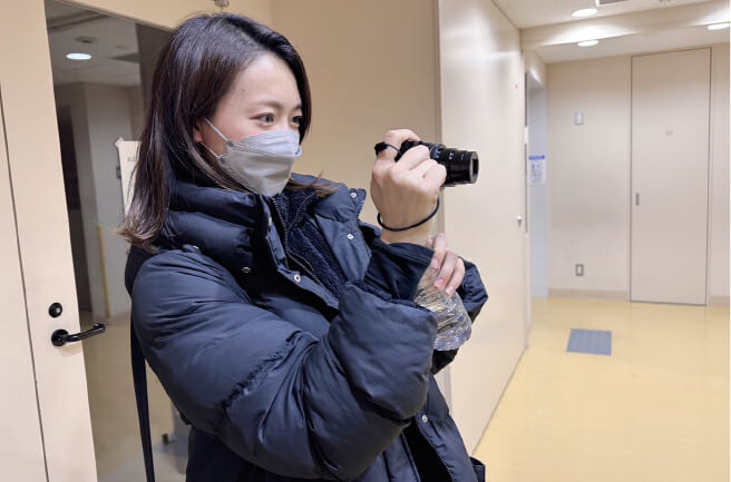 撮影に立ち会います(実務としては車の運転、スケジュール管理、現場での本人のサポートや映りチェックなど)。