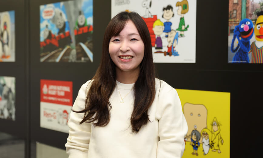 IPを通して世の中のトレンドをつくれることです。自分が担当したキャンペーンがSNSなどで話題になっていると、ファンの方に喜んでもらえたという嬉しさと共に、トレンドをつくる一員になれたと感じることができます。ライセンスビジネスは多様な業種の方とやり取りができるので、自分の知らなかった世界を知ることができる点も魅力だと思います。